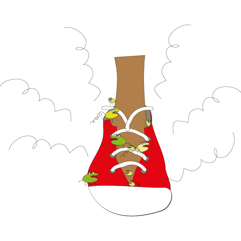 When sweat gets trapped inside shoes, germs (bacteria and fungus) grow. This can cause the rotten smell that sometimes comes from feet and shoes