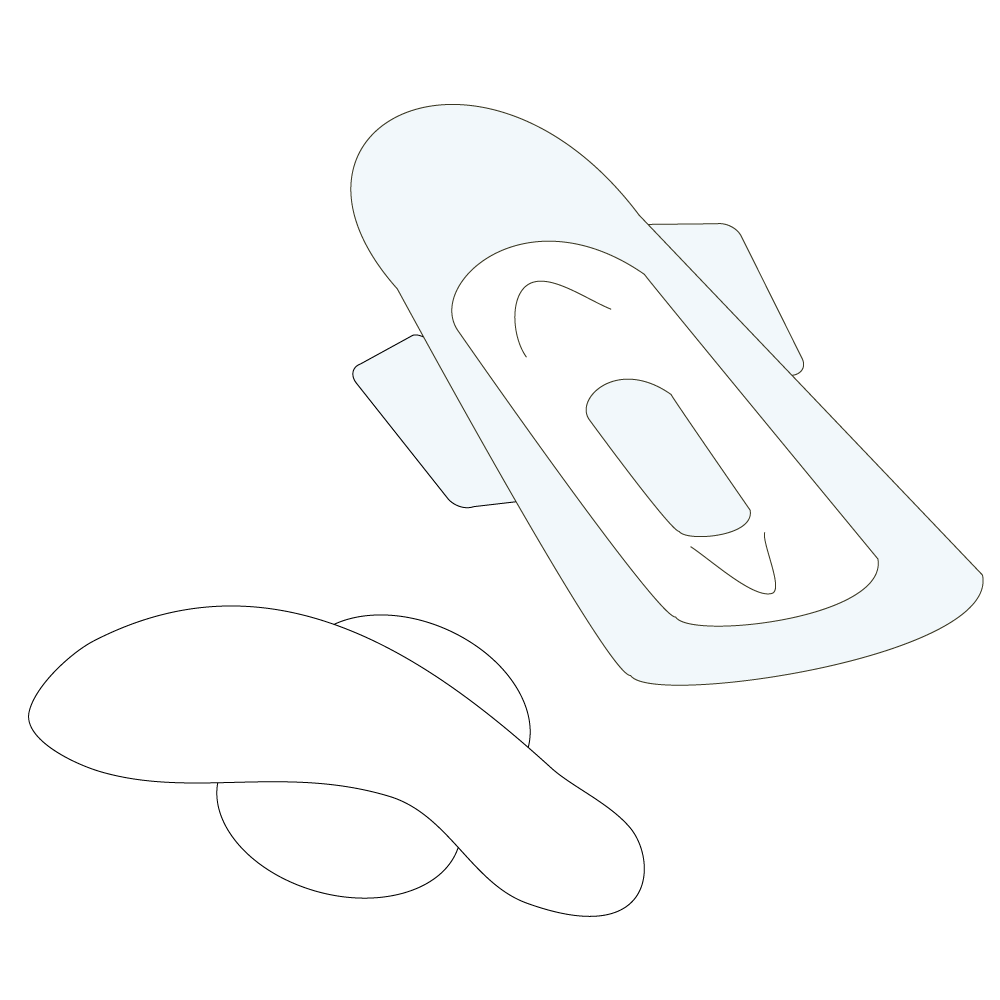 Sanitary towels / pads are special pads usually made out of cotton wool and can be bought at some shops. Some pads are disposable, and others are washable. They are also placed inside the panties between the legs. Some have a sticky side to hold the pad in place. Some have ‘wings’ that help prevent leaks. A medium pad holds a teaspoon (5ml) of menstrual fluid.