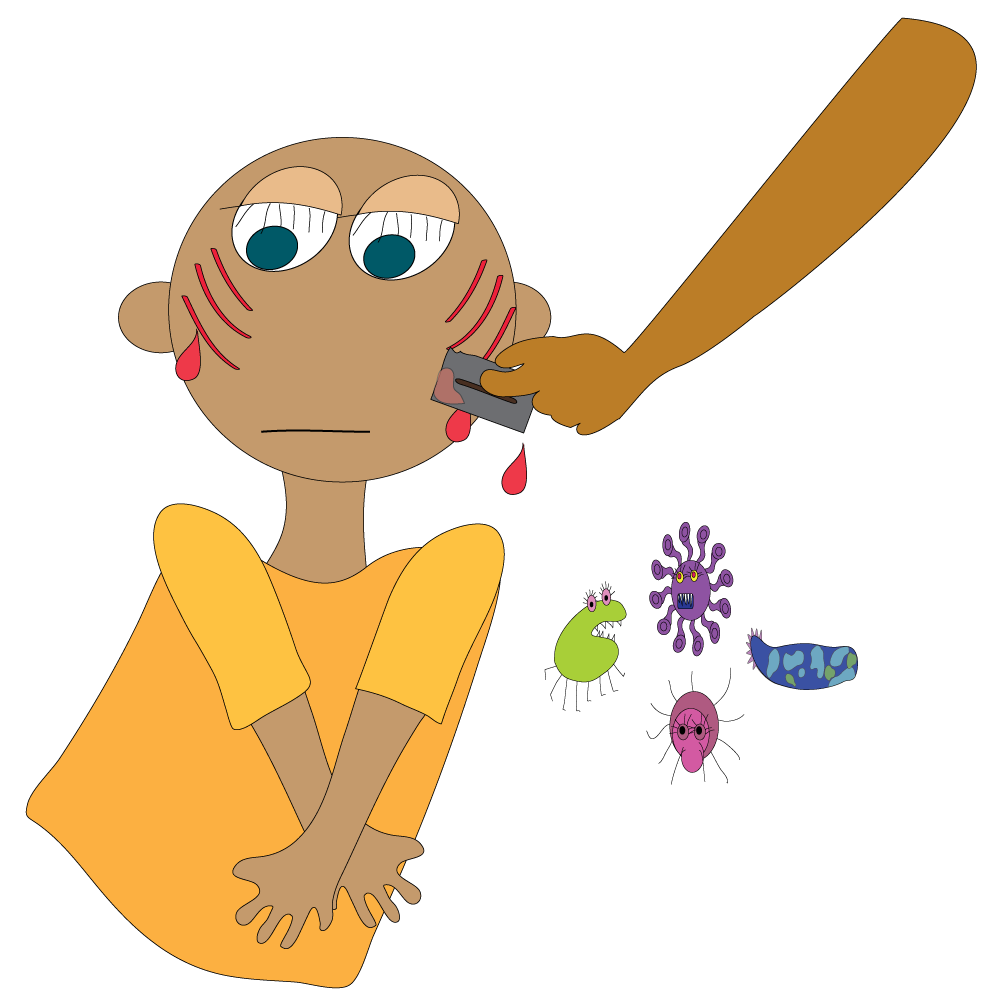STIs can also be transmitted through unsafe blood practices like sharing needles, during intravenous drug use, scarification rituals or tattooing.