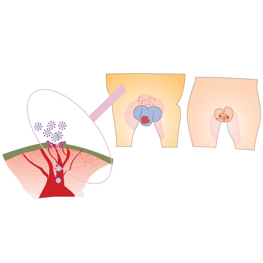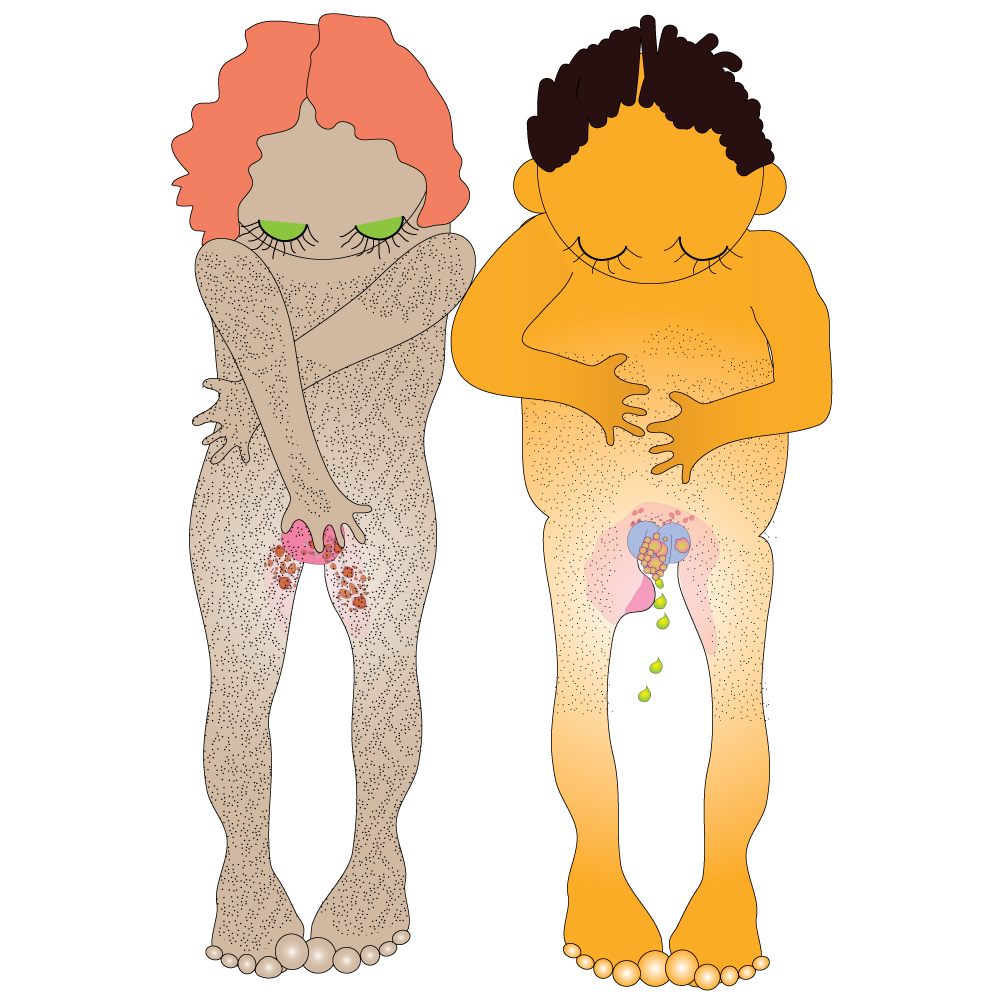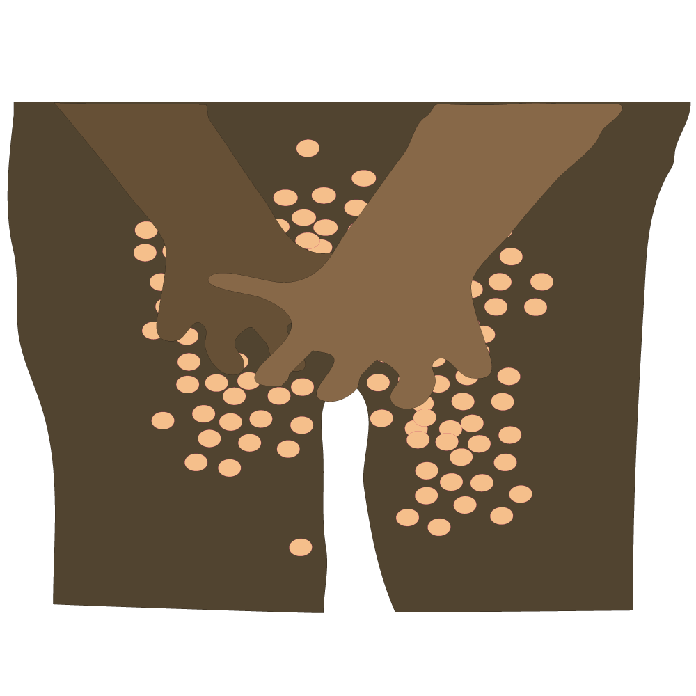 Cause: Sexually transmitted but can also be passed on by prolonged direct skin contact. Can spread rapidly in crowded conditions.