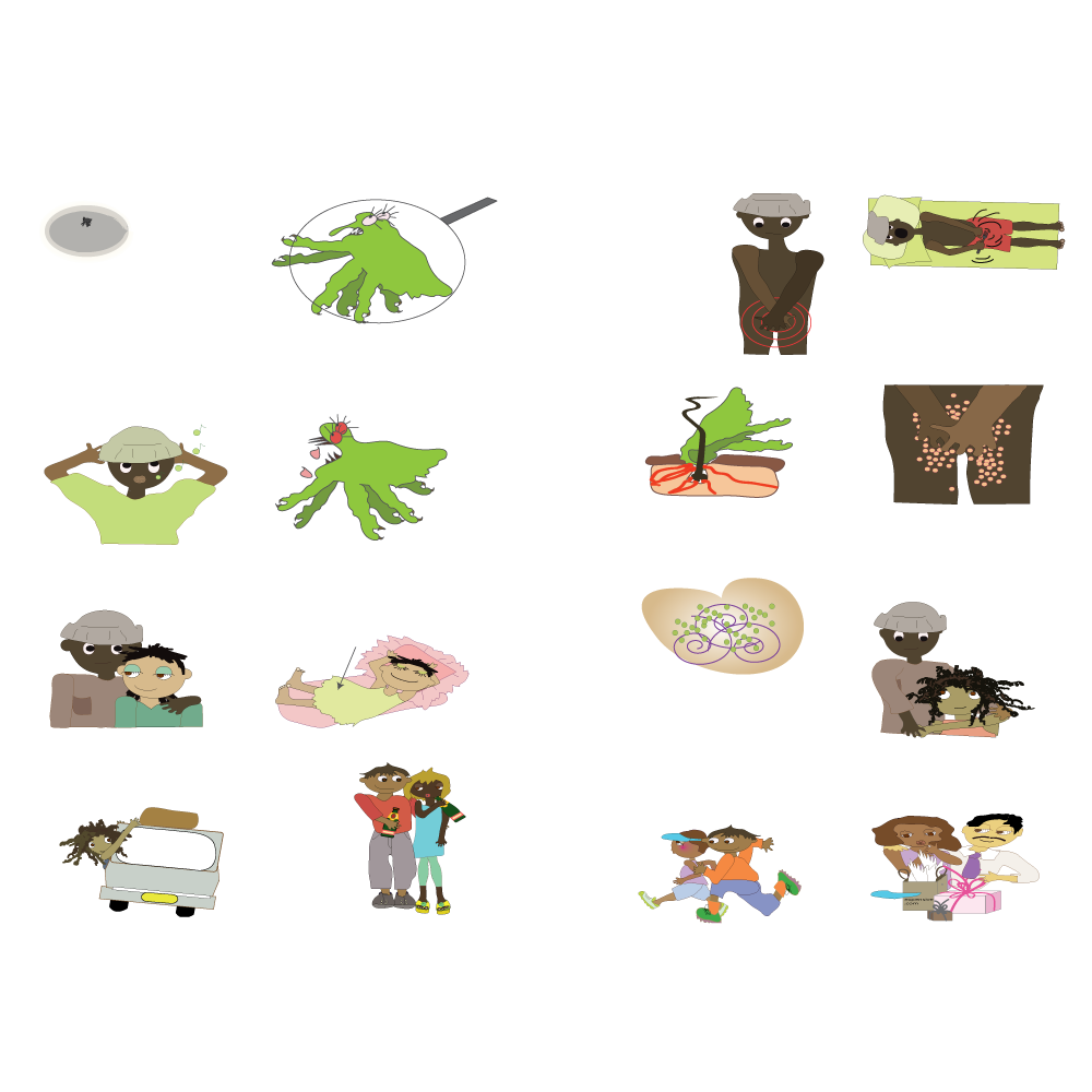 Some of the different names for STIs: The drop, the itch, gonorrhoea, bad blood, syphilis, crabs, HIV, morning drip, herpes, fever kiss, the clap, VD, cystitis