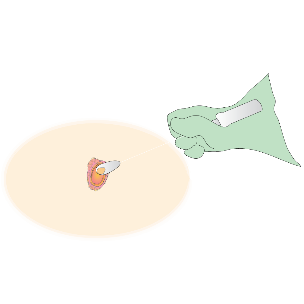 Thibelo: Qoba ho ba haufi le ditho tsa botona/botshehadi, mokoteng kapa molomo wa motho ya tshwaeditsweng. Hopola, Ha ho na matshwao a bonahalang.