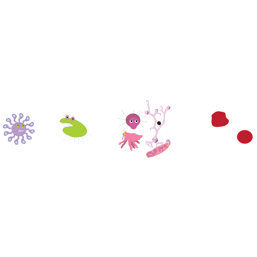 Rashes /lesions /lumps /sores, aches and pains on the body, swollen glands, and a high temperature, plus other assorted symptoms.