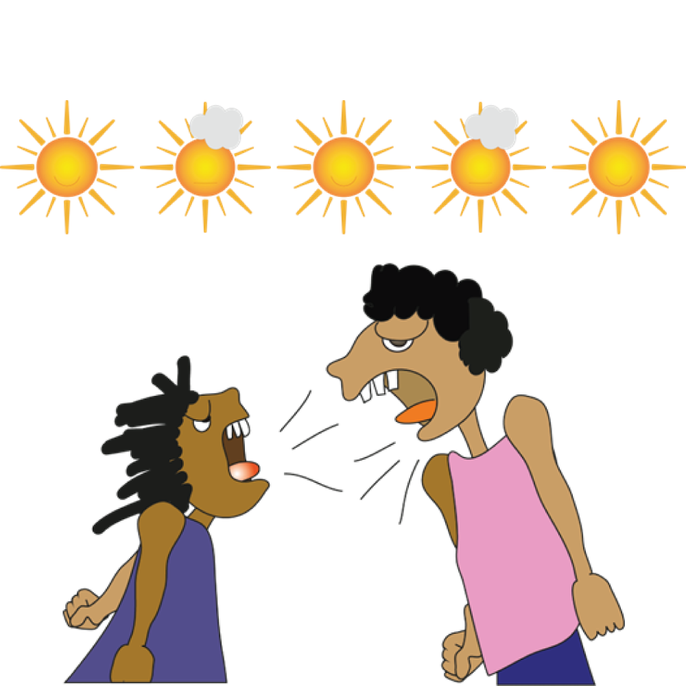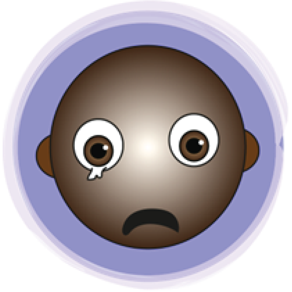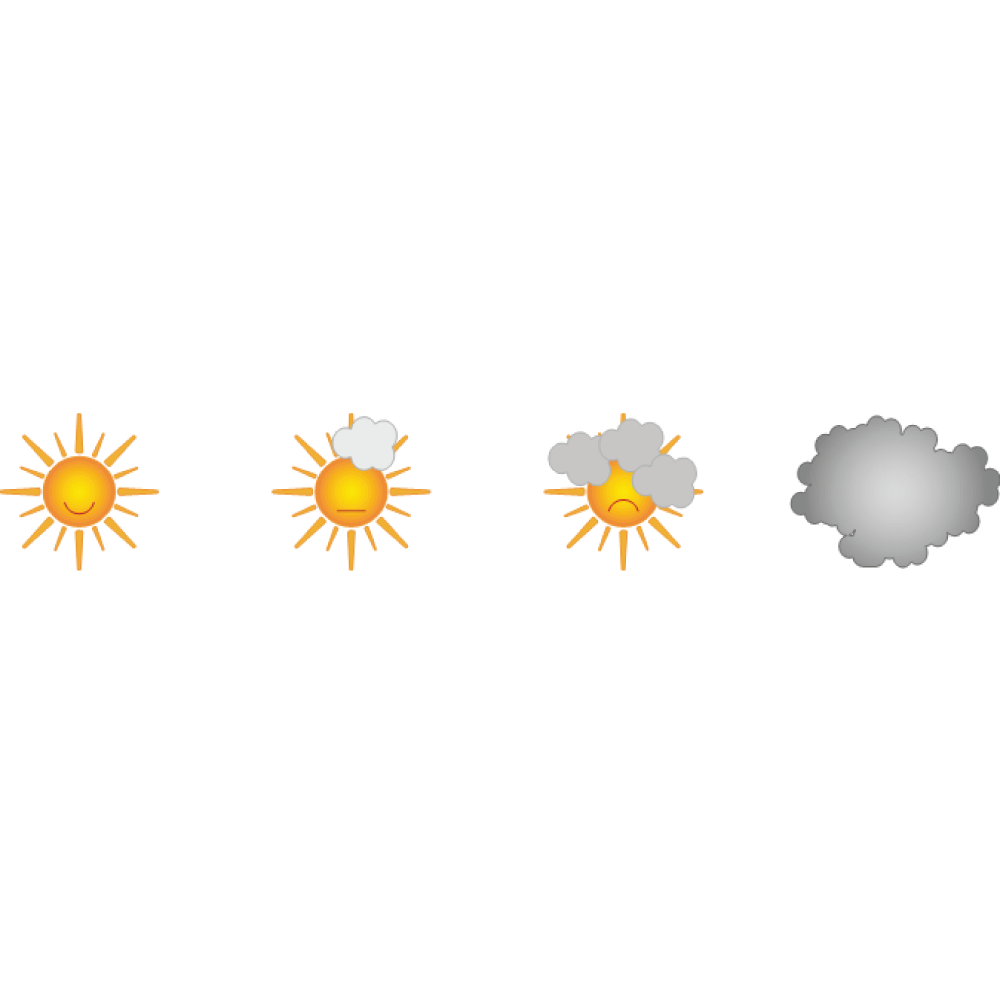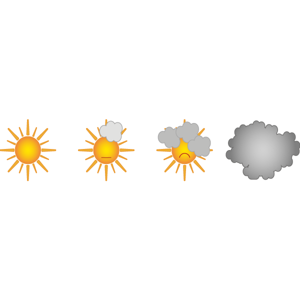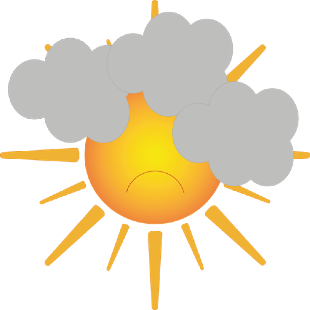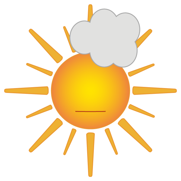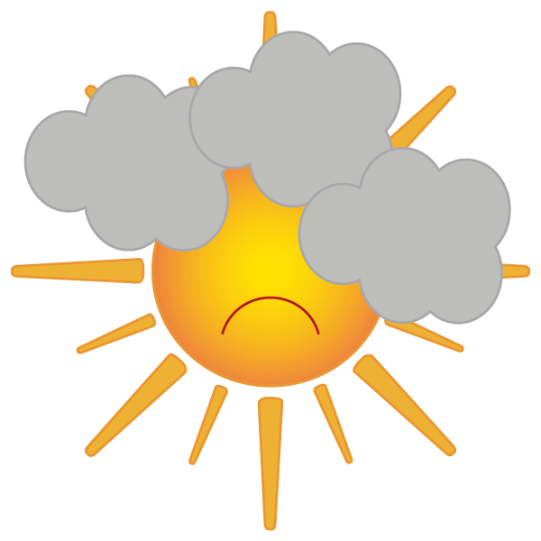 Our symbol has a sad mouth with quite a few dark clouds over the sun.